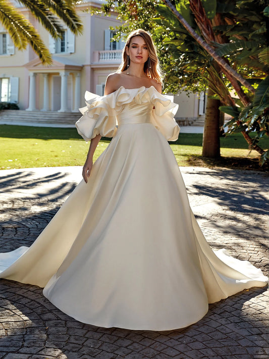 Vores 2026 kollektion er nøje udvalgt på diverse messer i udlandet. Her er der kræset for detaljer, komfort og materialevalg, så du kan føle dig enestående på din store dag.