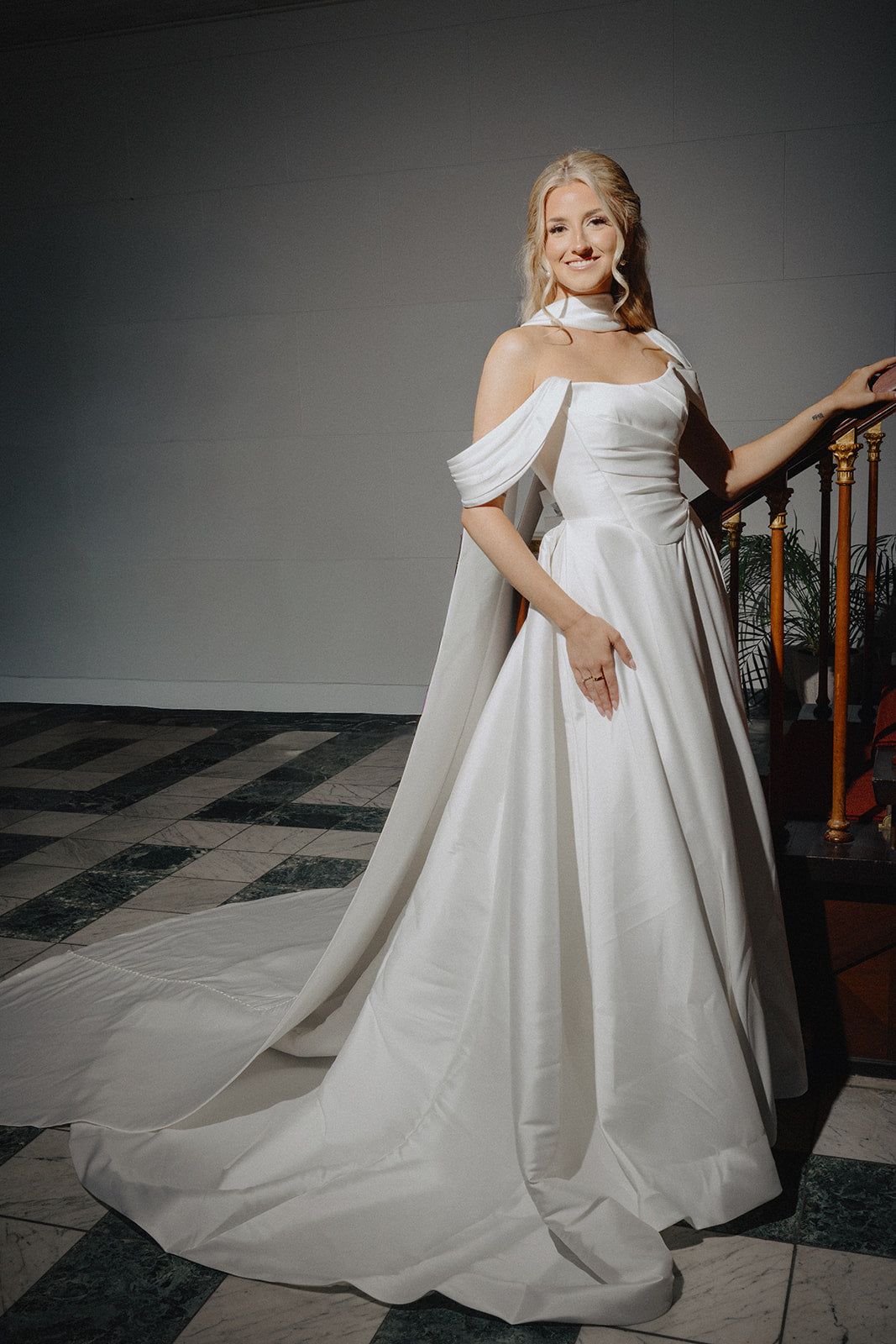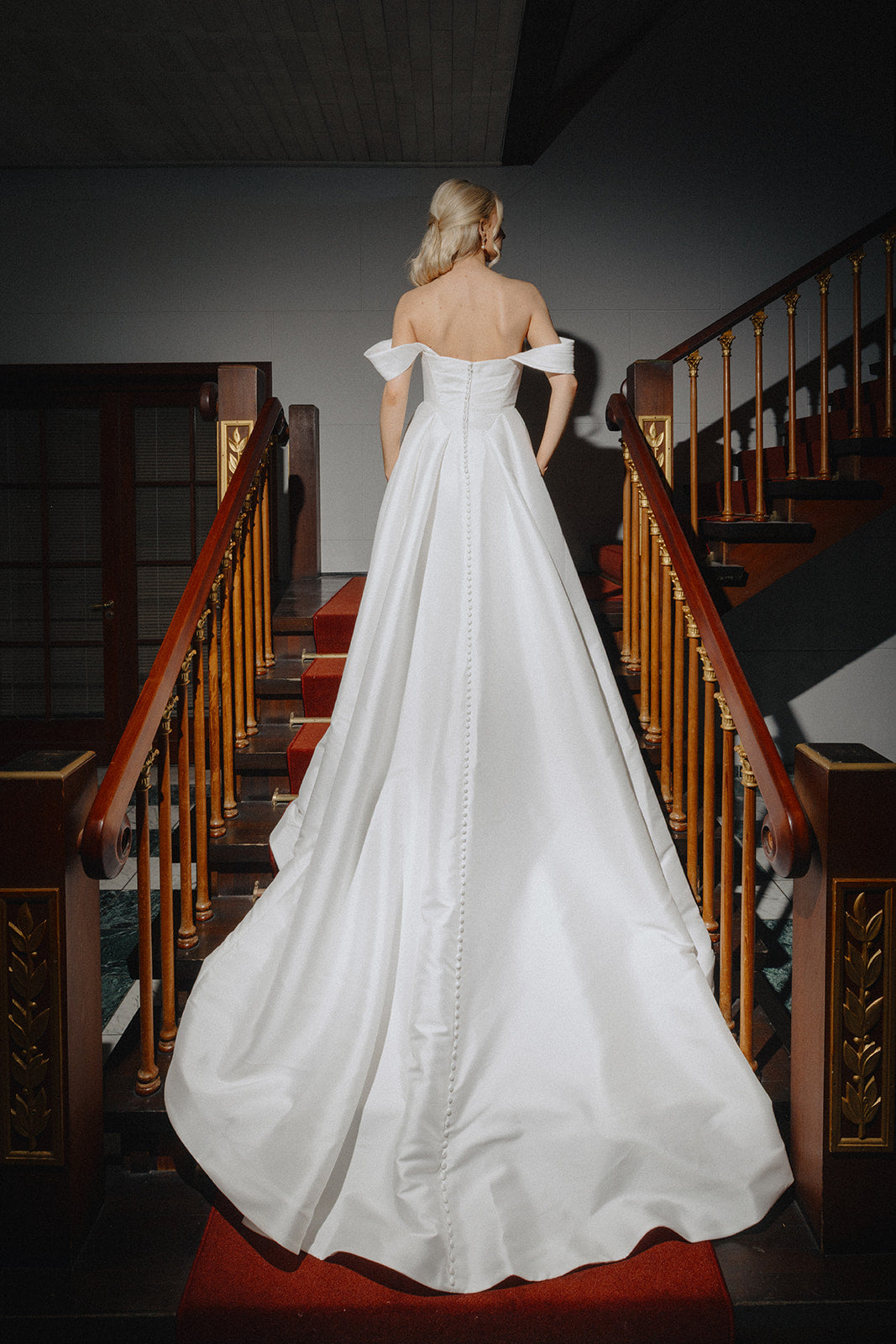 Vi har et inhouse skrædderi i begge vores butikker, der kan stå for tilretningen af din brudekjole.