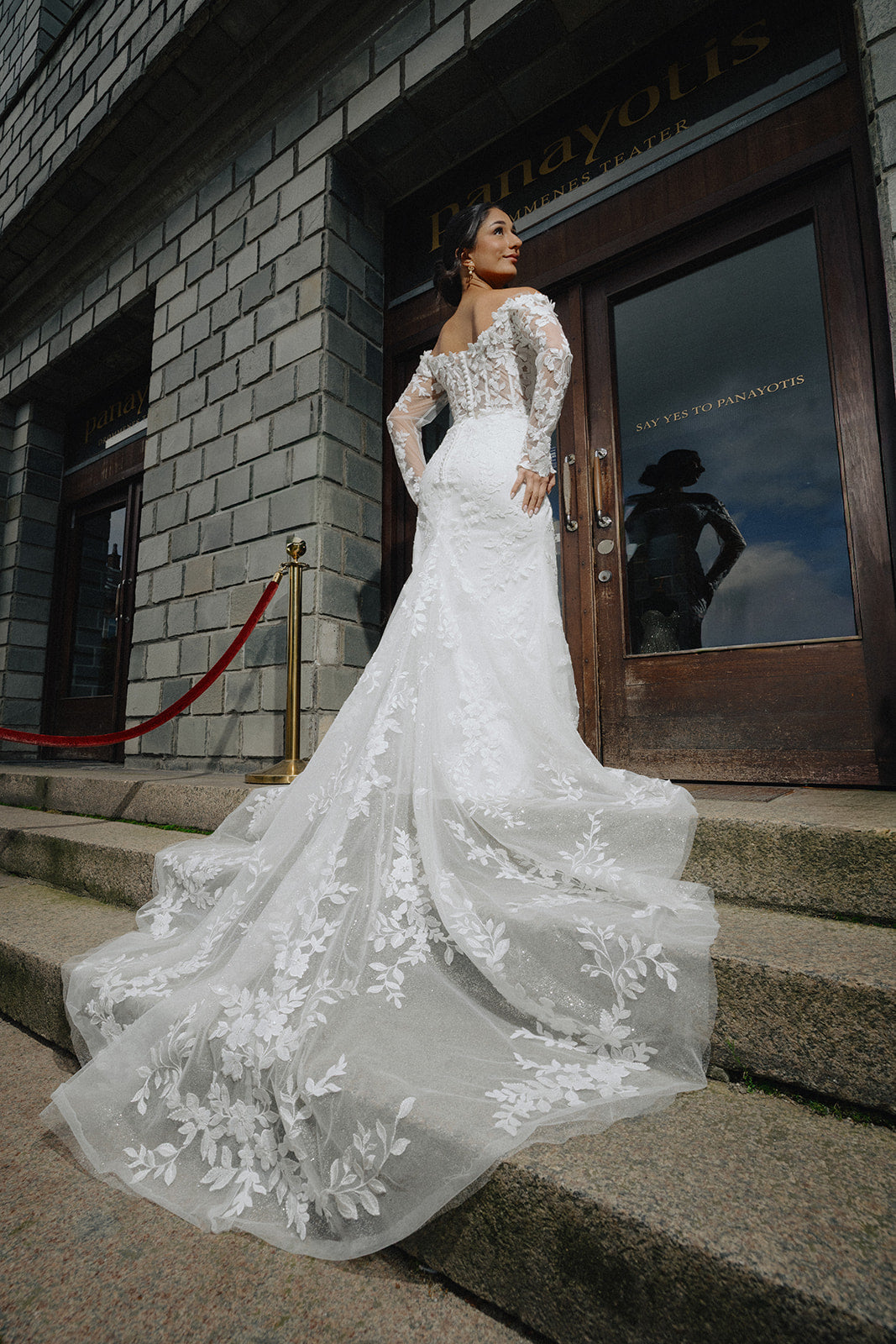 Vi har et inhouse skrædderi i begge vores butikker, der kan stå for tilretningen af din brudekjole.