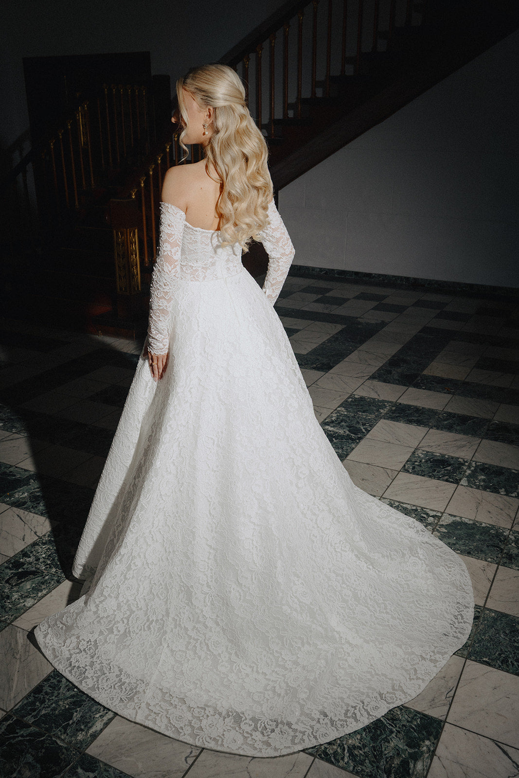 Vi har et inhouse skrædderi i begge vores butikker, der kan stå for tilretningen af din brudekjole.