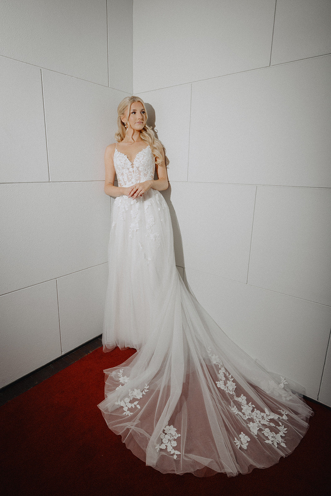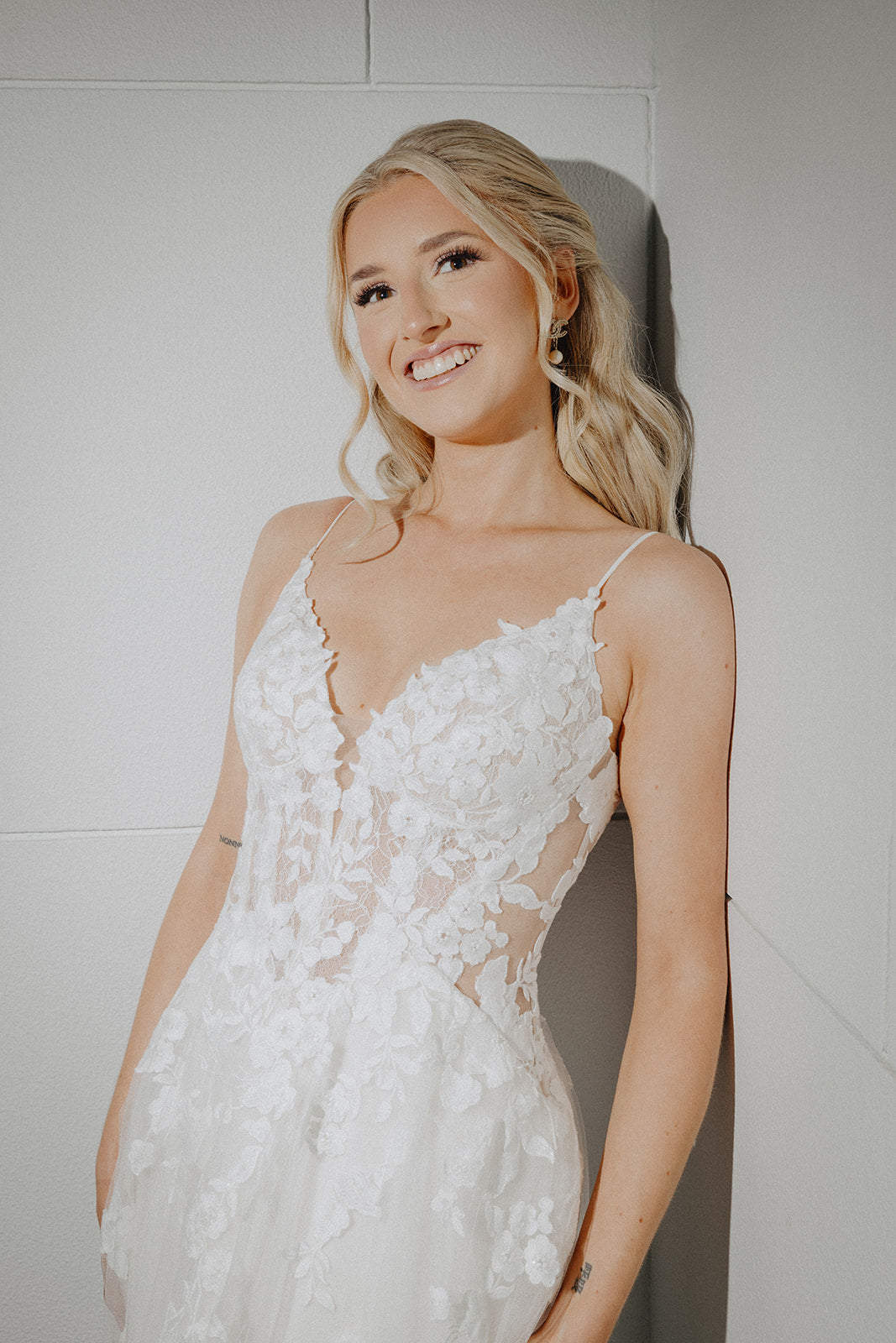 Prøvningen starter med en samtale, hvor vi vil spørge ind til din stil, størrelse, budget og ikke mindst til bryllupsfesten.